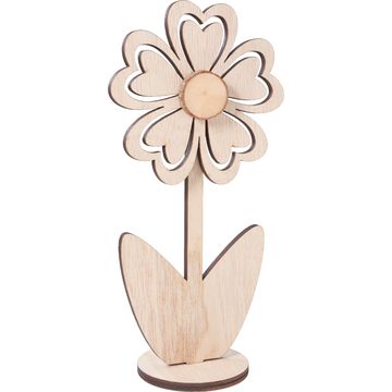 Spring at last! This wooden flower is perfect for your spring decoration. Whether individually or combined with other wooden flowers, the flower becomes an eye-catcher on the dresser, shelf, table, kitchen counter or windowsill. The wooden flower is also super suitable for decorating a door wreath. With a little wood stain, craft paint, glitter, straw silk or the napkin technique designed, the flower becomes quite individual and unique. Let your creativity run wild.