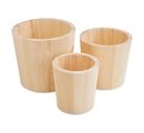 With the VBS Wooden plant pots, set of 3, you have the perfect basis for your creative craft ideas. The pots made of high-quality pine wood are available in three different sizes: approx. Ø 11.5 x H 12.0 cm, Ø 14.5 x H 13.5 cm and Ø 17.0 x H 16.0 cm. The inside dimensions are Ø 9 x H 11.5 cm, Ø 12 x H 13.2 cm and Ø 14.5 x H 15.5 cm, with a thickness of 1 cm. The untreated surface offers you a wide range of design options.