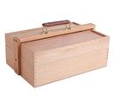 With this case you have your order well under control! Ideal for your painting or handicraft utensils. Made of oiled wood, divided into three levels, it offers sufficient space for colour pencils Palettes and DIN A4 Underground for painting:. The top level can be folded to the side in two parts and, together with the middle level, contains eight different sized compartments. The lowest level consists of a drawer. So you always have your art supplies clearly arranged together in a wooden case. With leather handle.