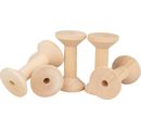 These VBS yarn rolls made of raw wood have a height of approx. 6.0 cm with a Ø of approx. 3.5 cm and are approx. 1.45 cm wide. The inner Ø is approx. 0,7 cm. You will get 5 yarn rolls delivered