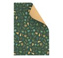 The motif consists of various fir trees in different shapes on a green background. The back is plain. The cardboard has a width of 50 cm and a length of 70 cm. The weight is 230 g/m².