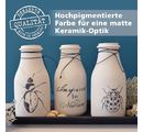 With this unique ceramic effect paint in a matt look, you can give decorative objects made of glass, wood, plastic, cardboard, clay and many more a great, eye-catching finish. Even after drying you can influence the finish by sanding it slightly to create a silky-matt vintage style. It can of course also be finished with a gloss varnish or treated with a PatinaWaxX.