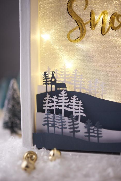 You wish for another winter light box? We created the alternative "Let it snow" using the cardboard frame "House" and the plotter machine Silhouette Cameo 3