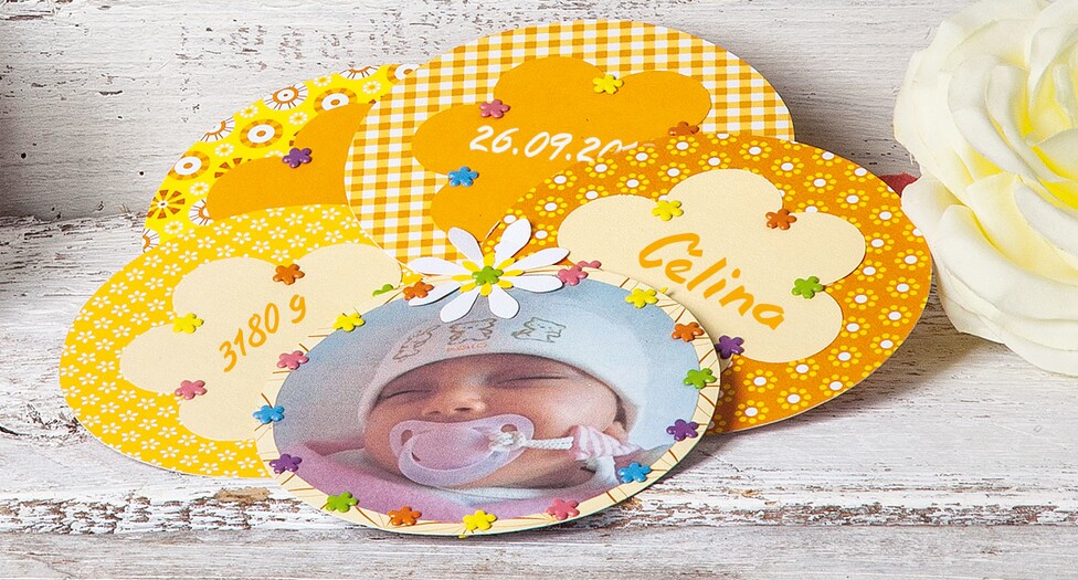 Welcome new citizen of the earth! Share with friends, relatives and the godparents and send such a personalized card. Whether size, time, and weight, on each flower you will have enough space to name all important details. This good news is guaranteed to put a smile on the face of the recipient.