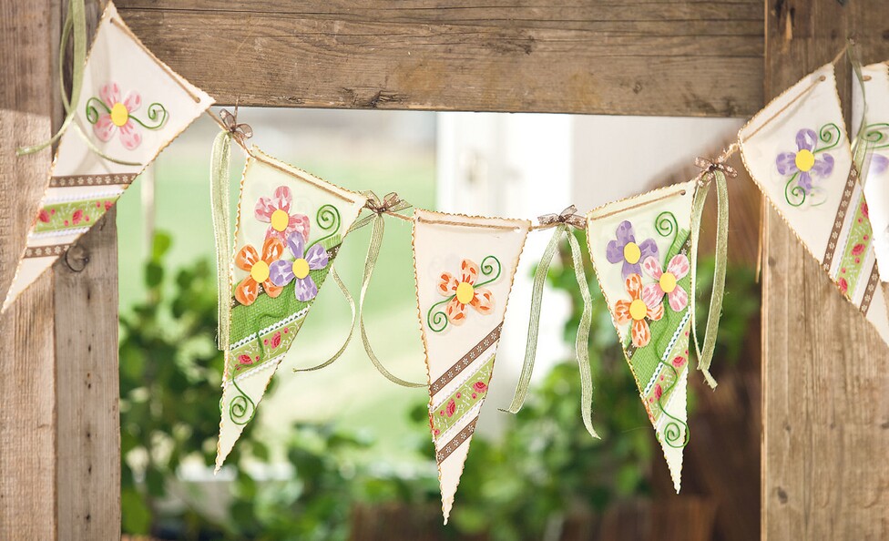 Wimpelkette aus Moosgummi und Bändern