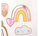 Get creative and make beautiful window pictures with this set. The kraft paper motifs are pre-cut and have a motif size of approx. 2.7 x 2.7 cm - 21.0 x 20.2 cm. This means there is no need for laborious cutting out. The set contains 14 motifs in the shape of a rainbow, cloud, unicorn, turtle, jellyfish, rocket, planet, bee, flower, heart and star. There is guaranteed to be the right motif for everyone. Each of the 14 motifs is included twice. The motifs can be customized using the tracing paper and rainbow foils included.