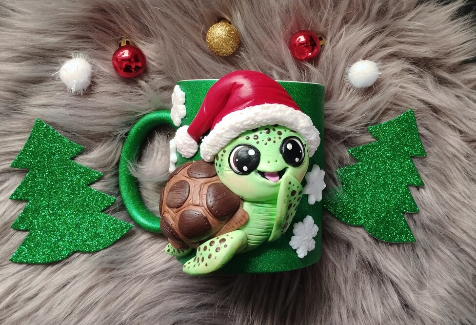 The winning idea "Christmas mug with a freehand modelled Christmas turtle made from FIMO" was submitted by Julia. She shows us how to creatively design a beautiful mug with a cute Christmas motif.