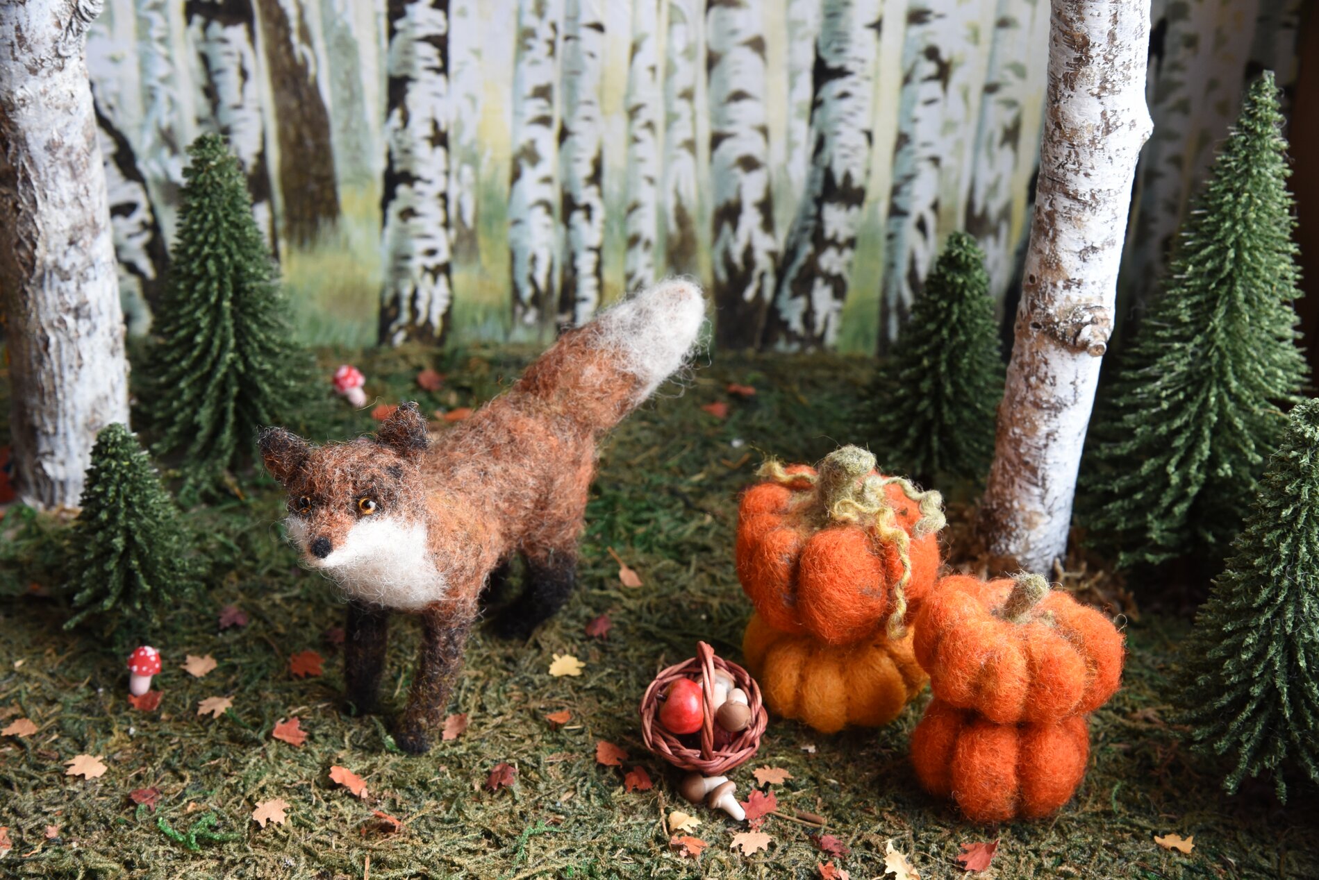 Now wrap the wool around the wire strands piece by piece and felt them into a solid body using the felting needle. Gradually shape the fox using white and brown fairy wool.