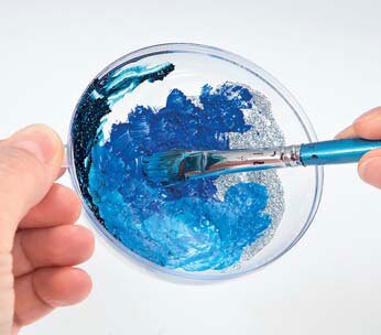 Dab may green and turquoise blue Handicraft paint irregularly behind the dried glitter paste. Press the ball halves together.