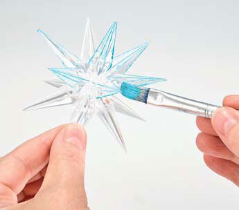 Put the Acrylic-star together and wipe turquoise blue Handicraft paint over the edges. Now let it dry and then dab on Glitter Paste in the colour Moonstone