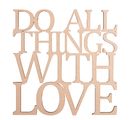 The wooden writing "Do all things with love" has a size of approx. width 18 cm x height 18 cm, thickness 3.7 mm.