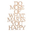 This wooden writing "Do more what makes you happy" is about 12.5 cm wide x 19.5 cm high and has a thickness of 3.7 mm.