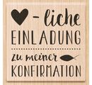 This stamp "cordial invitation confirmation" will lovingly design your invitation cards for confirmation. With a lot of love for detail it makes them Card design an eye-catcher. Total size: approx. 5.6 cm x 6.1 cm, motif size approx. 5.1 cm x 5.0 cm. Made of wood.
