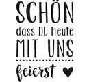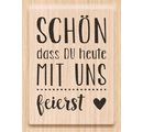 This stamp "Nice, that you celebrate with us today" is ideal for a guest gift, place cards or place cards. It will make every guest feel welcome at your event. In a modern style it provides a relaxed atmosphere. The stamp measures approx. 3.5 cm x 5.0 cm, the motif measures approx. 3.0 cm x 4.2 cm. Made of wood.