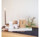 This Wooden stand for dried flowers and cards is a versatile table and home decoration. The wooden stand made of MDF wood has a size of approx. 40.0 x 7.5 x 4.0 cm and is provided with 15 holes. These have a Ø of approx. 4 mm with a depth of approx. 2 cm. The 2 slots are approx. 2 mm wide and have a depth of approx. 3 cm.