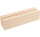 The wooden stand for dried flowers and decorative ring is suitable for versatile home and table decorations. The pine wood block has a length of approx. 15 cm and a height and width of approx. 4 cm. It is provided with 10 holes, which have a Ø of approx. 4 mm and a depth of approx. 3 cm. The slit is about 5 mm wide and also has a depth of about 3 cm.