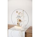 A super decoration for the trend with dried flowers. Various flowers and grasses can be stuck into the holes and create a stylish effect. A pretty decorated decorative ring with ribbons, lettering and other dried plants can also be inserted into the slot and provides a great eye-catcher. Also suitable for photos, greeting cards, menu cards or place cards. So unique table decorations for wedding, birthday, confirmation and much more can be designed.