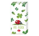 I fazzoletti di carta "Buona fortuna" di IHR sono un must per ogni scatola di artigianato! Il motivo mostra una simpatica coccinella, un rospo, dei trifogli portafortuna e la scritta motivazionale "Buona fortuna" su uno sfondo bianco. Può utilizzare questi fazzoletti di carta non solo per soffiarsi il naso, ma anche per disegnare piccoli oggetti con la tecnica del tovagliolo .