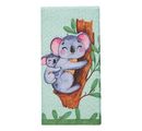 Scopra i fazzoletti di carta "Koalas" di Paper+Design e crei i suoi progetti fai da te. Il motivo mostra un koala con un giovane animale sulla schiena che si arrampica su un albero. Lo sfondo è verde e presenta dei cuori bianchi.