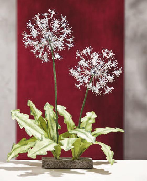 Bisogna guardare due volte per riconoscere i grandi denti di leone come perline. La perla magica d'argento al centro crea sfere di fiori espressivi mai visti prima. Una nuova grande idea di artigianato!