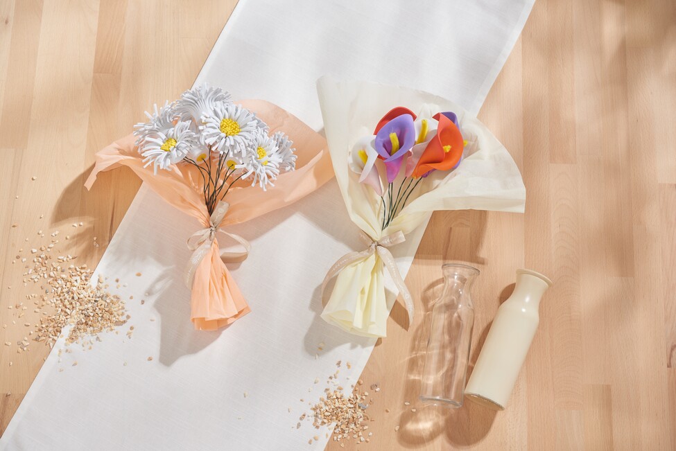 Allora queste istruzioni per il fai-da-te fanno al caso vostro! Imparate a creare bellissime margherite e calle dalla gommapiuma colorata. Queste piccole opere d'arte non sono solo un grande richiamo visivo, ma anche un progetto perfetto per i pomeriggi di bricolage.