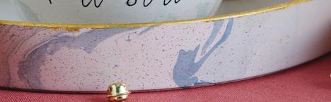Innanzitutto, assicurarsi che tutte le superfici siano pulite e prive di grasso. Versare alcune gocce di colore per marmorizzazione in un grande secchio pieno di acqua tiepida. Vedrete subito formarsi una pellicola sulla superficie dell'acqua. Con uno spiedino di bambù si possono disegnare bellissimi motivi nel colore. Ora immergete lentamente uno degli utensili da cucina nel colore. Per ottenere un bordo colorato pulito, si può mascherare l'oggetto con del nastro adesivo. Dopo ogni immersione, rimuovete i residui di colore dall'acqua con un pezzo di carta.