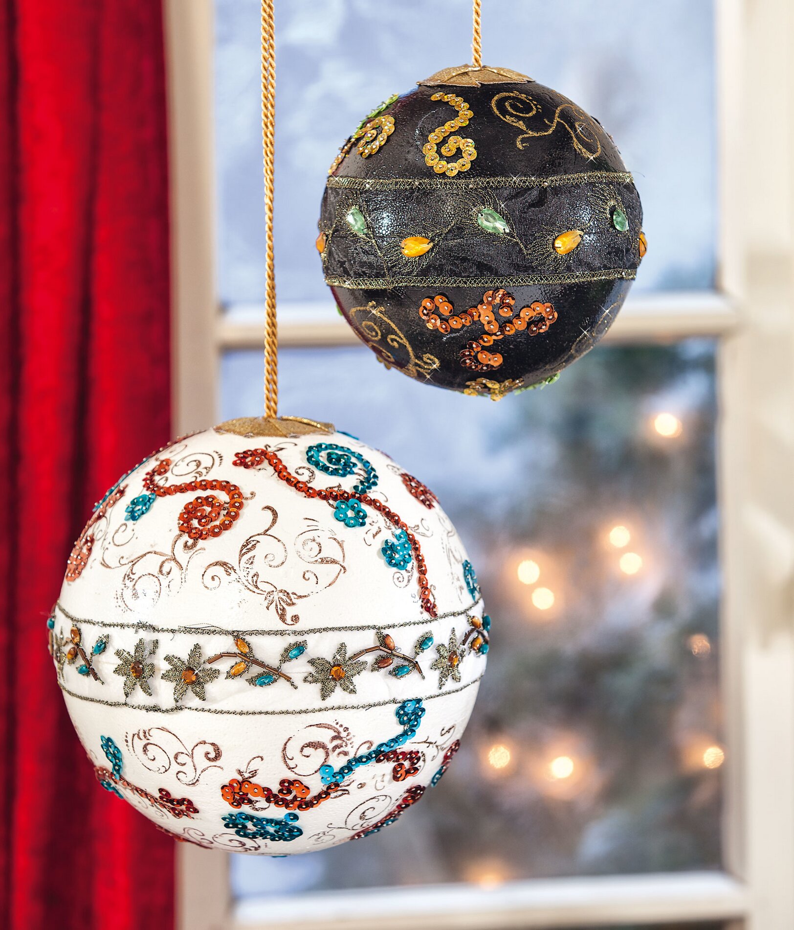 Tagliate i bordi decorativi a misura e fissateli intorno alle palline.
