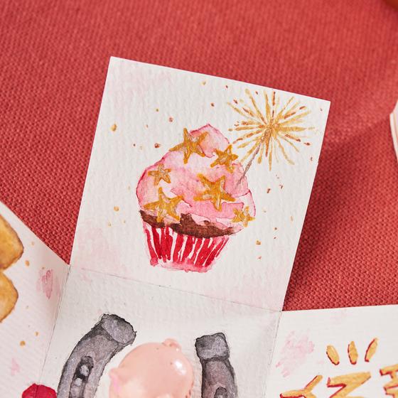Per prima cosa scarichi il modello gratuito. Poi trasferisca le scatole sulla carta acquerello e le ritagli con cura. La carta acquerello conferisce alla scatola una struttura robusta e fa sì che i colori prendano vita.