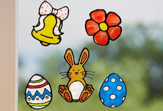 Ora è possibile colorare i motivi con Window Color a piacere. Lasciare asciugare il colore per circa 24 ore. Quindi rimuovere con cura i motivi dalla copertura trasparente e applicare le immagini ottenute su finestre, piastrelle, specchi o vetri.