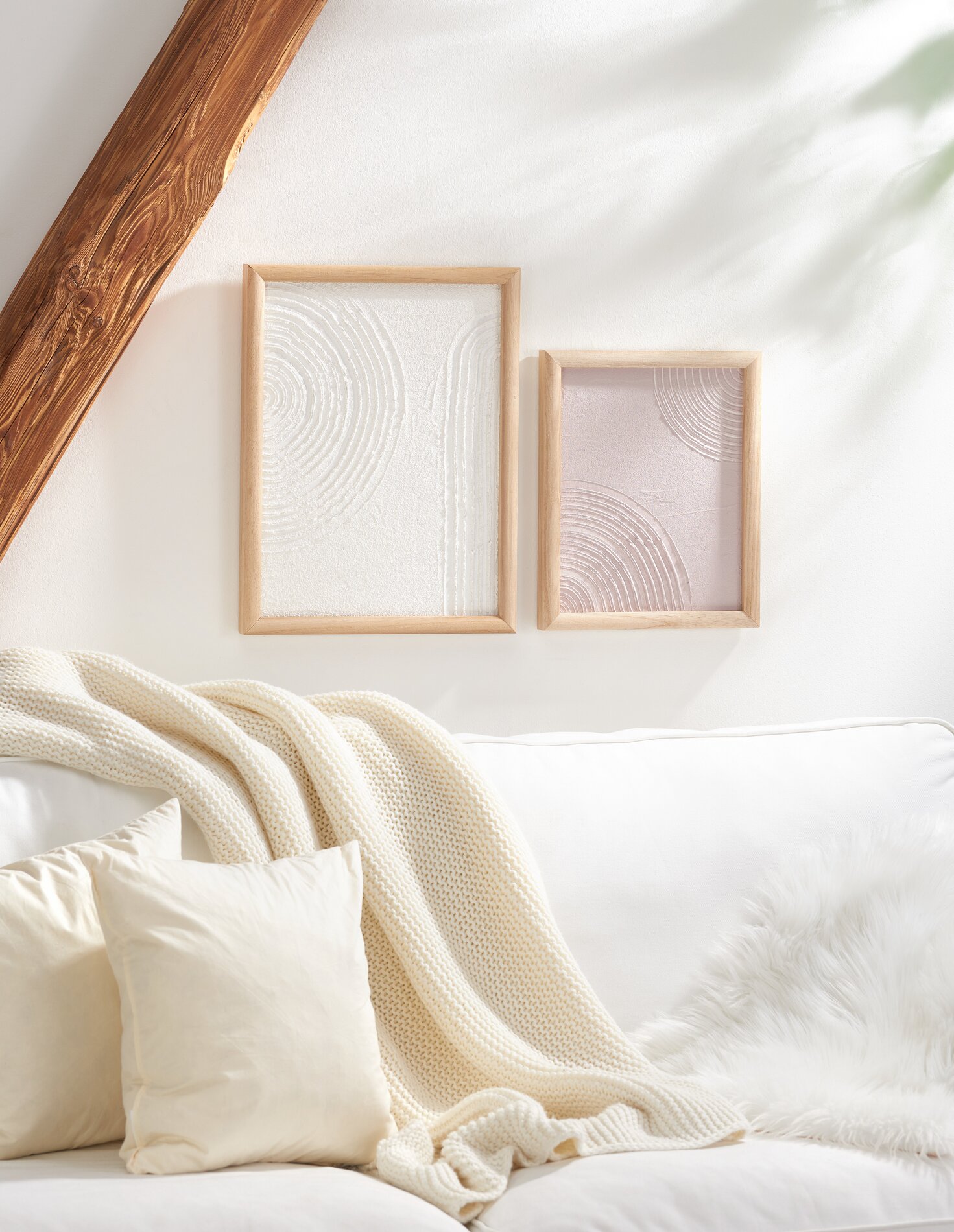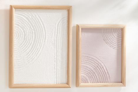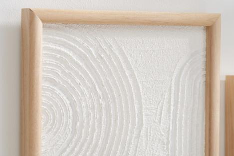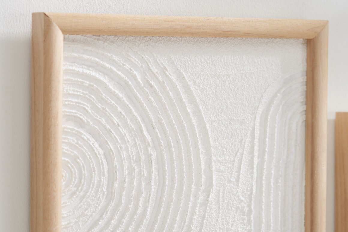 Entrambi i quadri sono stati realizzati con pasta testurizzata bianca. Il quadro grande nel formato 30 x 40 cm è stato realizzato con una texture grossolana, mentre il murale nel formato piccolo 24 x 30 cm è stato modellato con pasta texture colorata a grana fine.