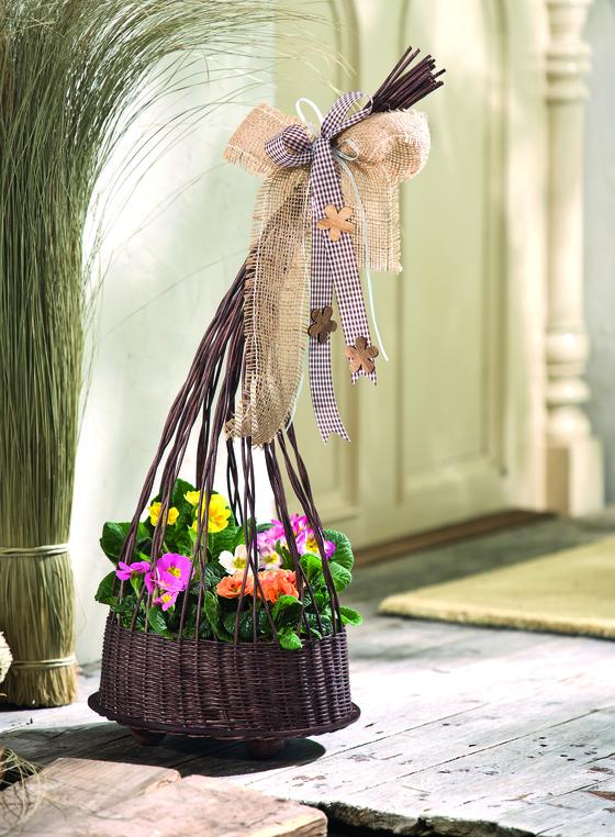 I cesti per piante con decorazioni floreali e lunghi pali che convergono verso l'alto sono un vero e proprio classico. Questa versione, dall'aspetto leggermente inclinato, potrebbe essere presto sulla porta di casa vostra!