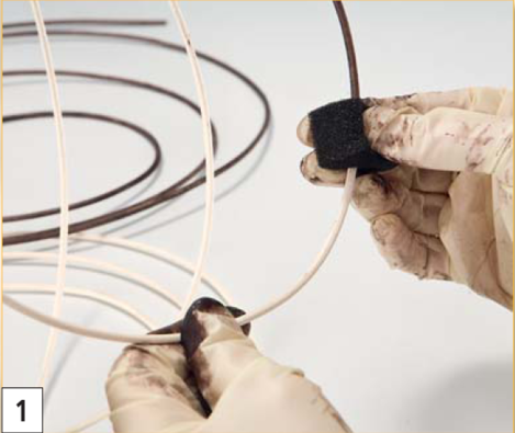 Colorare le sfere di legno, la base di canna e la canna con una spugna e una miscela di smalti per legno di colore marrone ed ebano (vedi immagine 1).