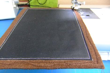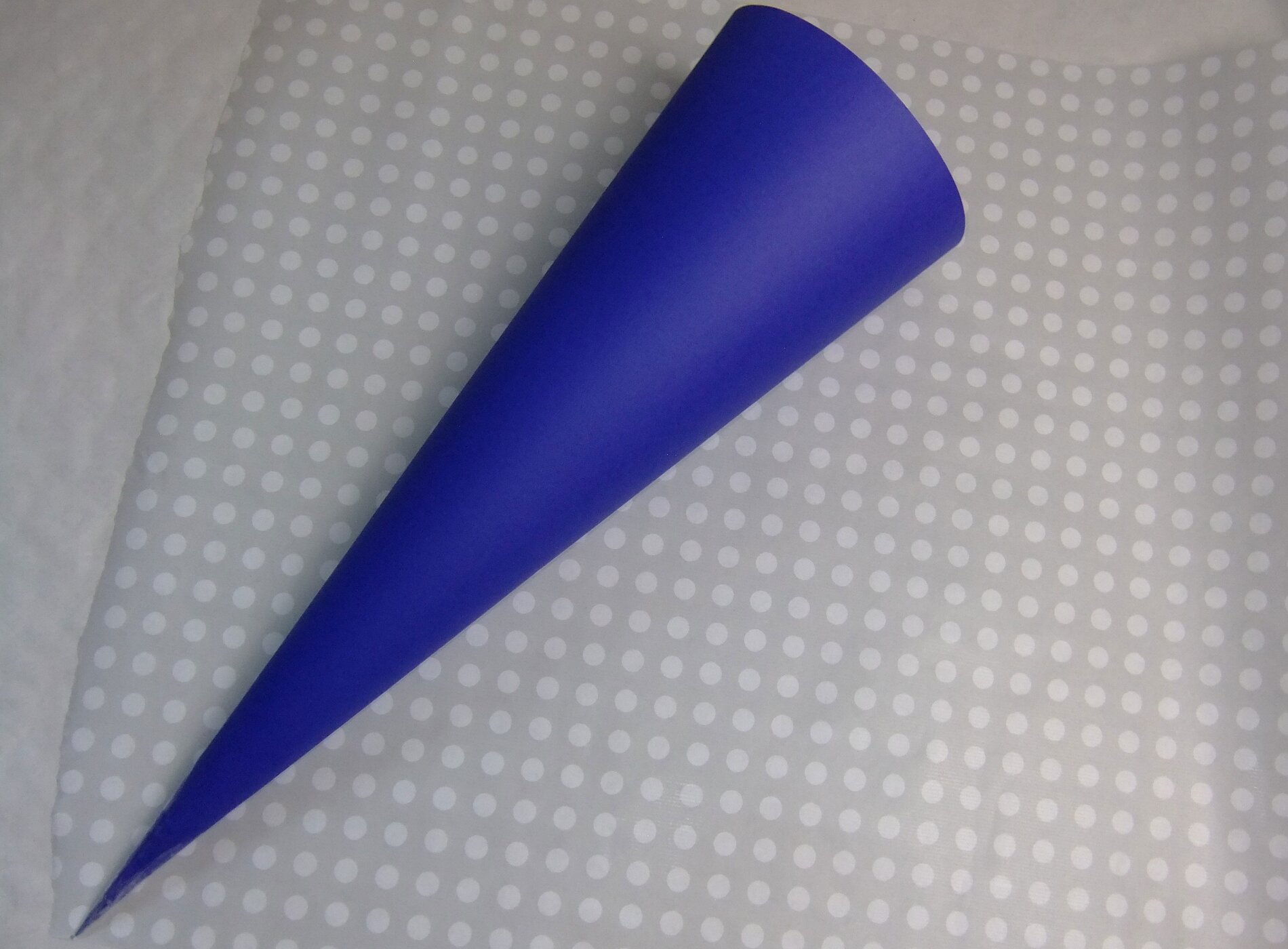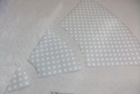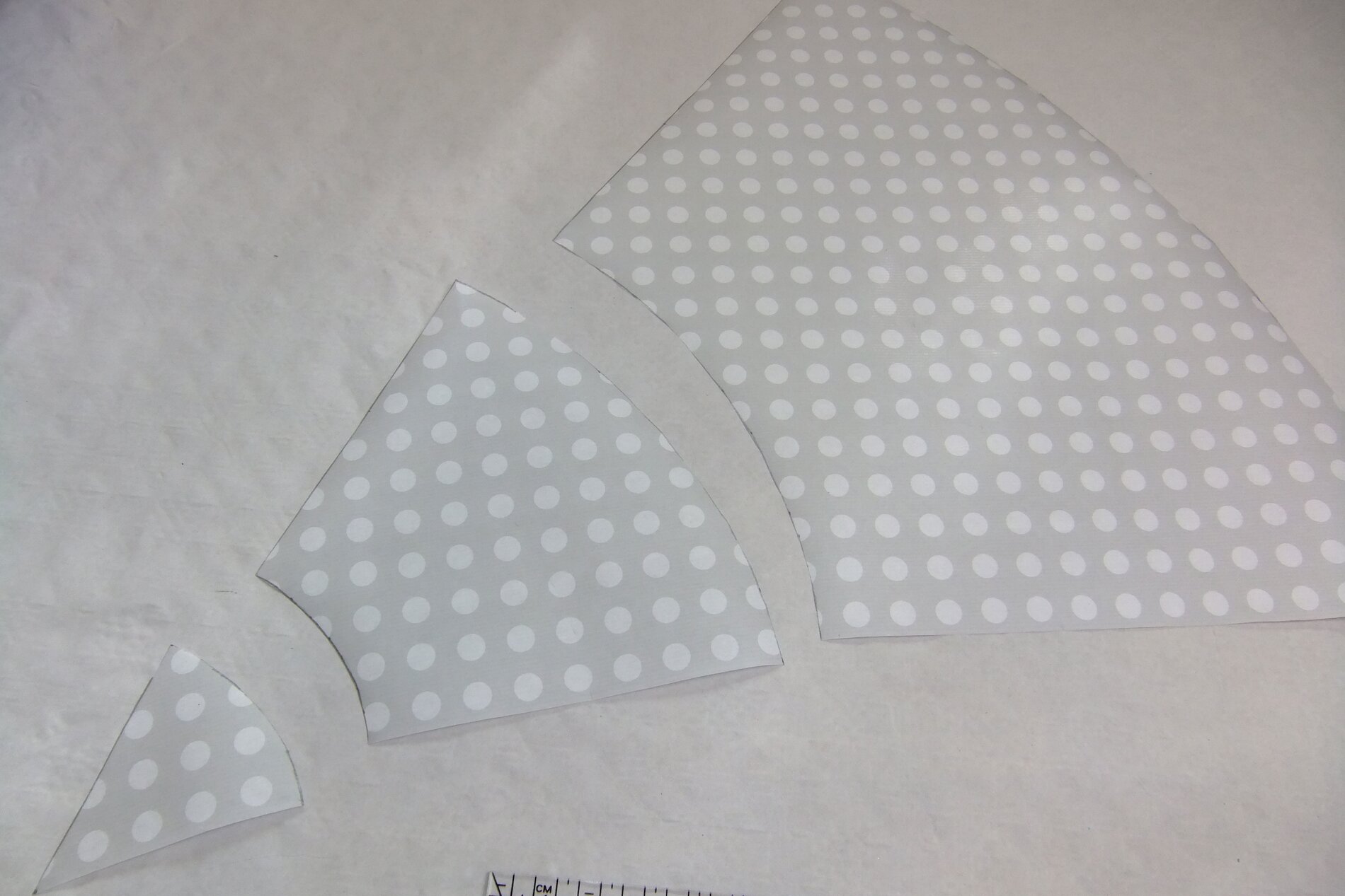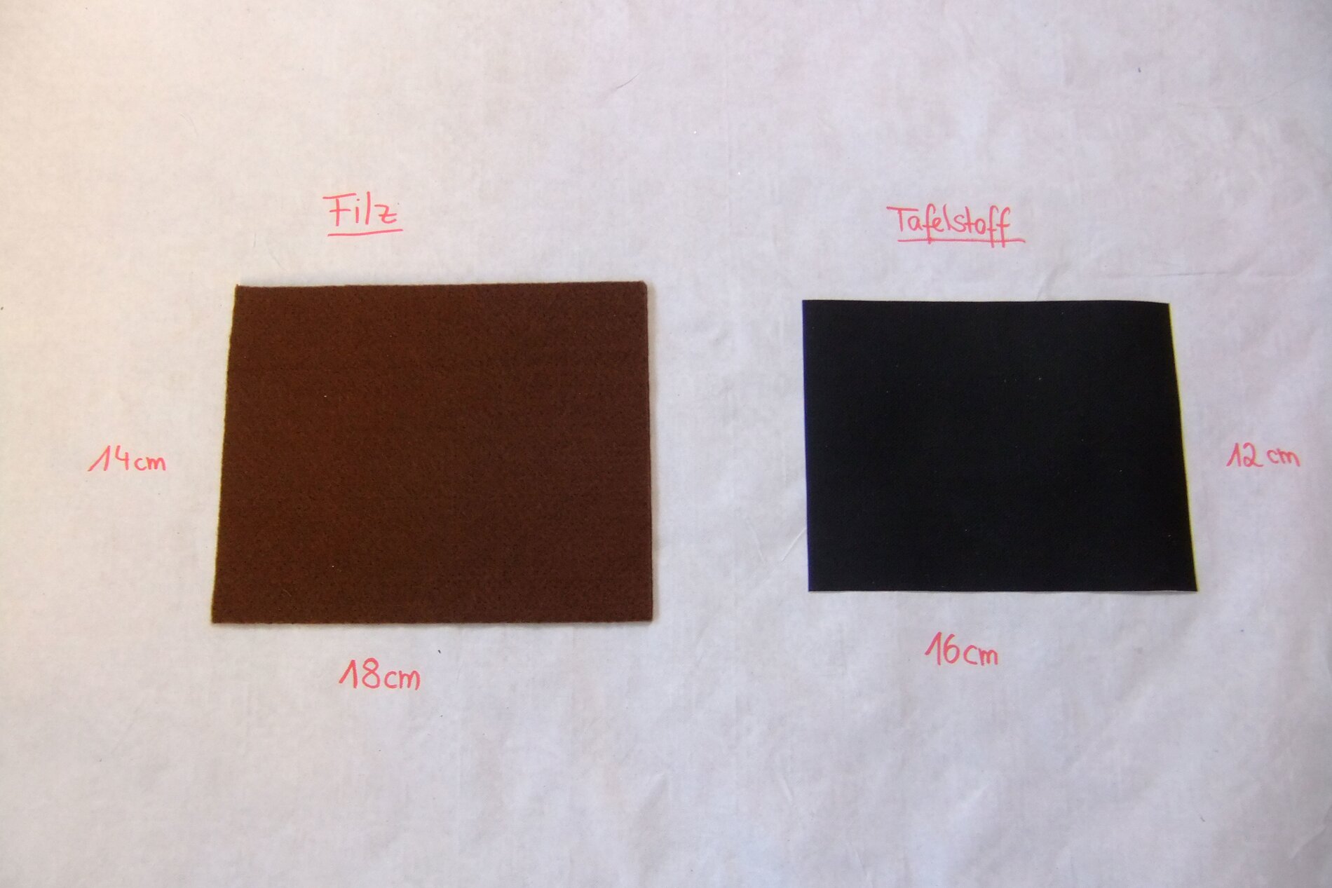 1 cono scuola fustellato, 1 punta di legno per il cono scuola, circa 60 cm di tessuto a stelle, circa 68 cm di tessuto di cotone liscio, 1 pannello di feltro marrone, un po' di tessuto lavagna, tessuto ricamato o il motivo da applicare, nastro dentellato e una spugna.