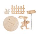 Scopra il motivo della lavagna in legno VBS "Coniglietto con cartello" e dia sfogo alla sua creatività! Con questo motivo in legno non verniciato , può creare le sue decorazioni pasquali personalizzate. Questo set di 5 pezzi è composto da un coniglietto, un cartello, una staccionata e degli alberi su un disco di legno rotondo. Con una larghezza di 10 cm, un'altezza di 15,2 cm e una profondità di 0,5 cm, è un vero tuttofare.