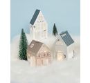 Questo meraviglioso kit artigianale "Case con luci" contiene tutti i materiali necessari per realizzare 3 case di carta illuminate . Le case misurano circa 7,8 x 9,0 x 17,7 cm, 9,7 x 8,5 x 15,0 cm e 12,0 x 8,0 x 11,7 cm.