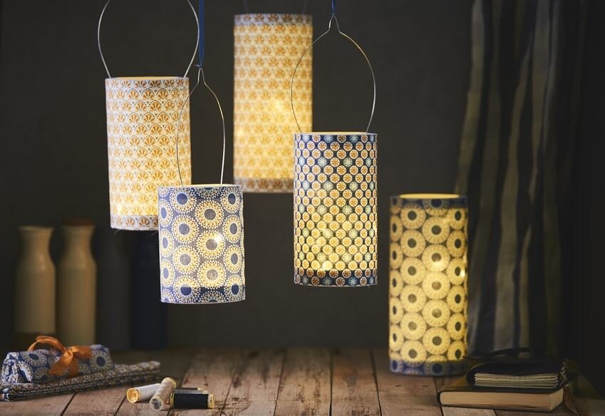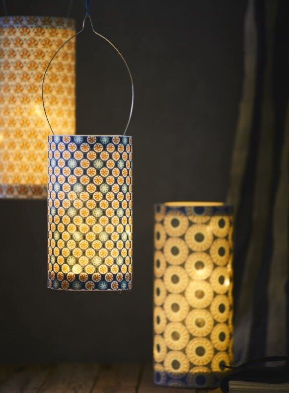 pellicola per lampade è una speciale pellicola semitrasparente, adesiva su un lato, attraverso la quale la luce di una lampadina o, in questo caso, di una stringa di luci LED brilla di un bianco caldo. Per realizzare queste lanterne, tagliare la
