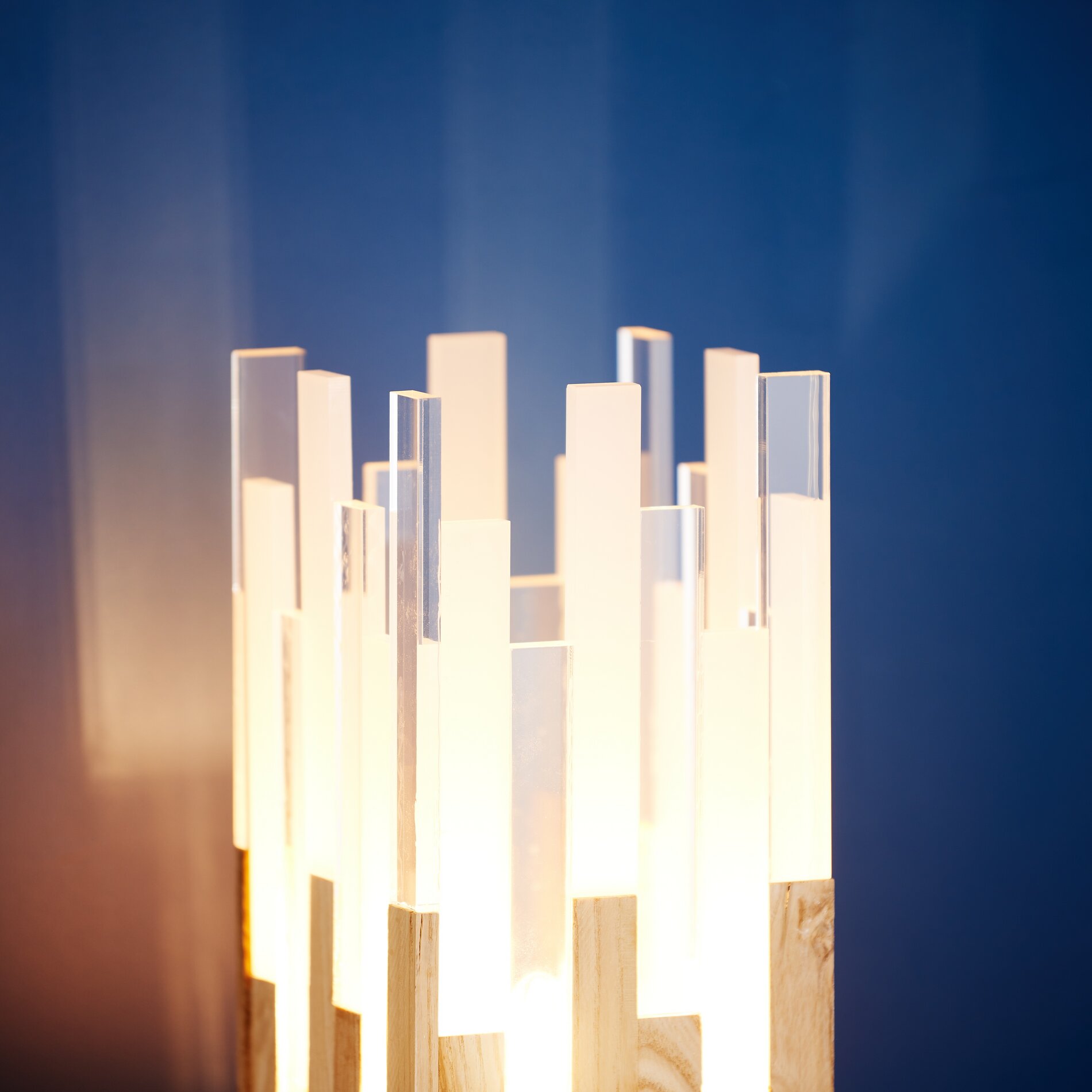 Incollare le quattro parti laterali finite sui bordi esterni con la colla artigianale. Per una maggiore stabilità, si possono fissare altri blocchi dall'interno per rinforzarli. Assicurarsi che la base della lampada abbia ancora spazio sufficiente.