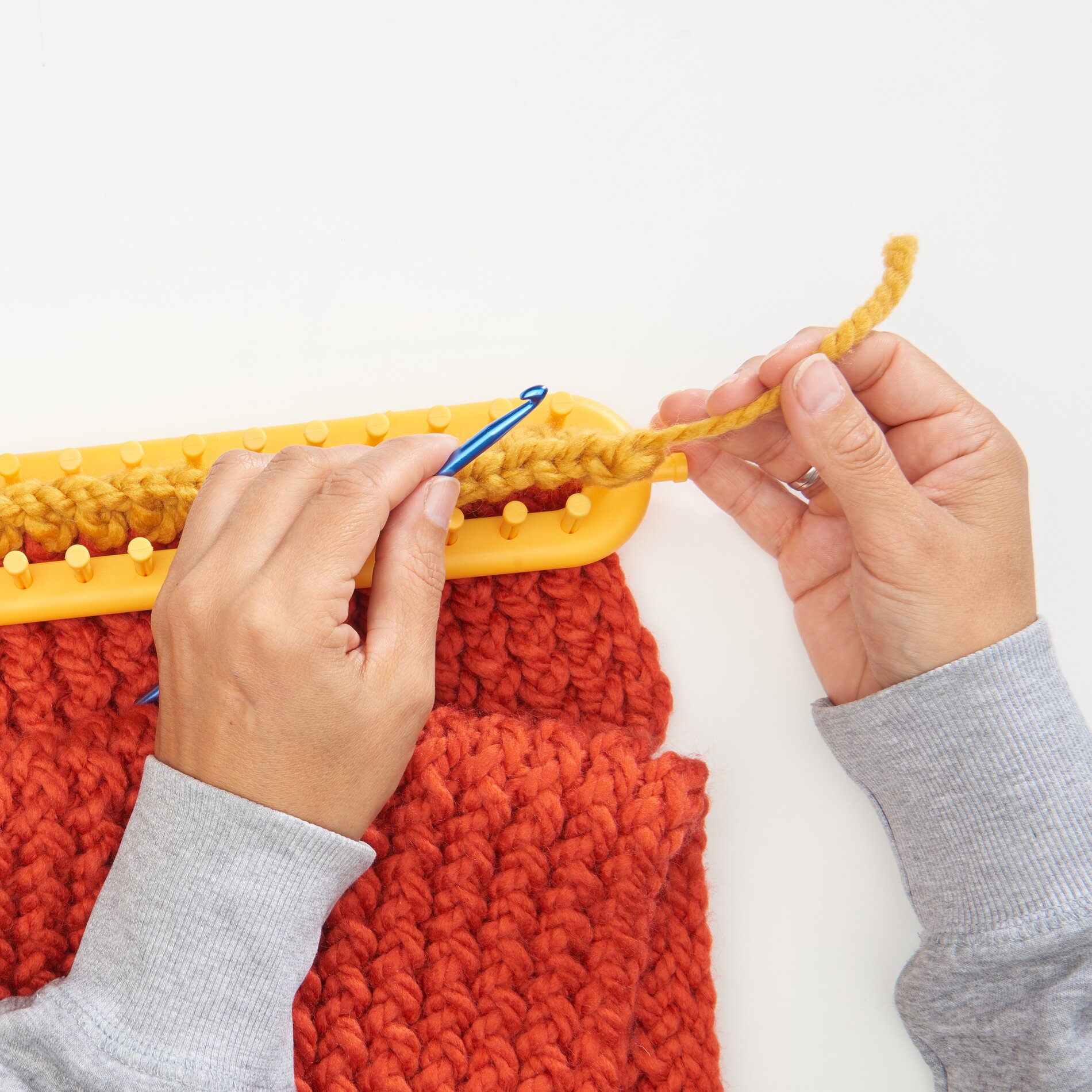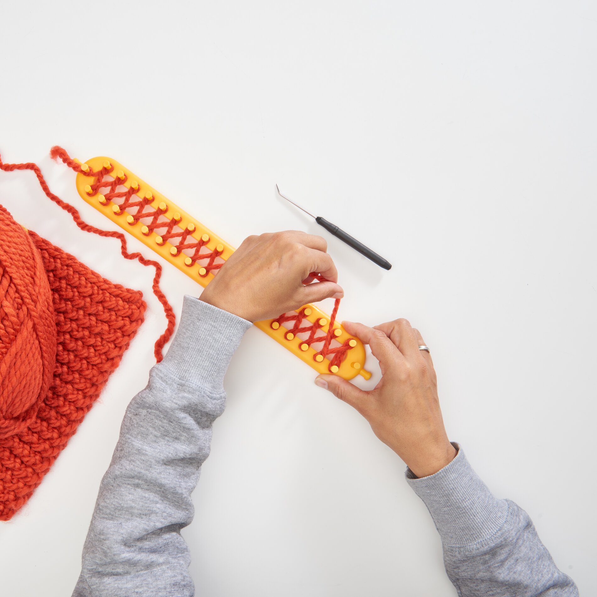 Volete lavorare a maglia una sciarpa accogliente, ma il metodo tradizionale con i ferri non fa per voi? Allora abbiamo la soluzione perfetta per voi: utilizzare una striscia per maglieria!