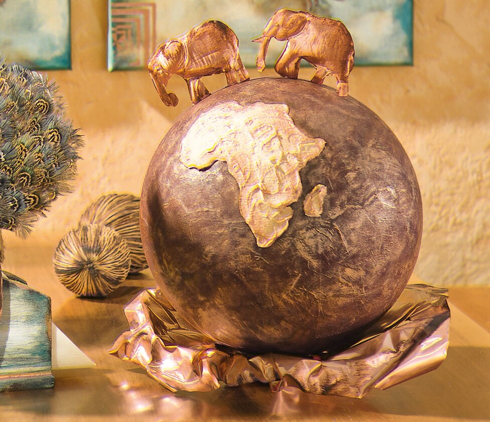 Nella fase successiva, modellare grossolanamente una lastra di rame in una ciotola. A questo punto si inserisce la palla. Gli elefanti vengono trasferiti dalla sagoma del motivo su una lastra di rame, ritagliati e modellati con la