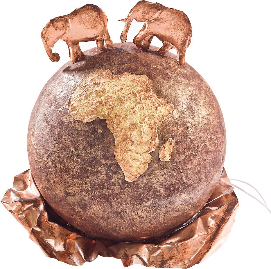 tecnica della filatura del metallo : Scolpire gli elefanti con il tappetino speciale morbido e lo strumento per la filatura del metallo, piegarli leggermente ai piedi e fissarli alla palla con qualche goccia di colla a caldo.