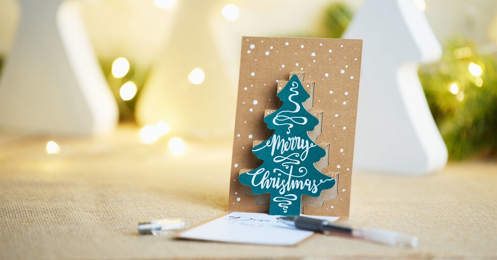 Il biglietto pop-up con l'albero di Natale è stato realizzato con carta kraft messenger. A questo scopo, il motivo dell'albero di Natale viene caricato nel plotter. Il motivo viene contrassegnato nella macchina. Selezionare la scheda "Pop-up" nel menu a discesa "Aree" del plotter. In questo modo si accede alle impostazioni per la creazione di un biglietto pop-up.