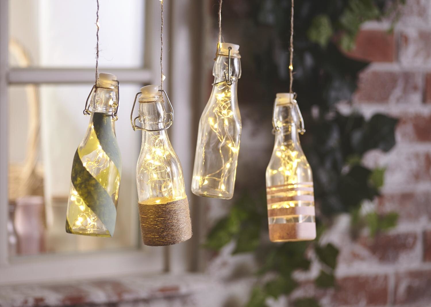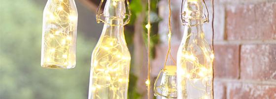 Le bottiglie di vetro sono adatte per essere decorate tutto l'anno. Si possono anche decorare con tovaglioli, carta transfer, nastri o altri materiali a piacere.