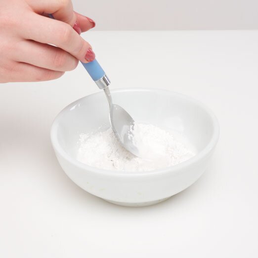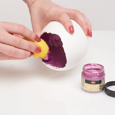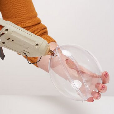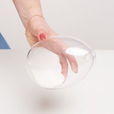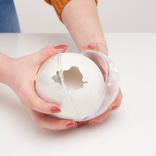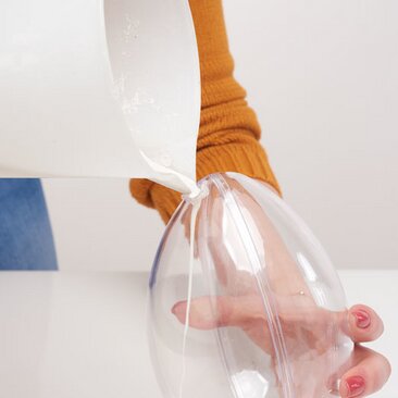 Mescolare ora 2 cucchiai colmi di composto per colata con acqua. Il composto deve essere leggermente più liquido di quanto indicato sulla confezione del prodotto, in modo da poterlo versare più facilmente attraverso il foro di fusione negli stampi acrilici chiusi. Ora fate roteare l'uovo in acrilico in modo che il composto di colata sia ben distribuito nell'uovo.