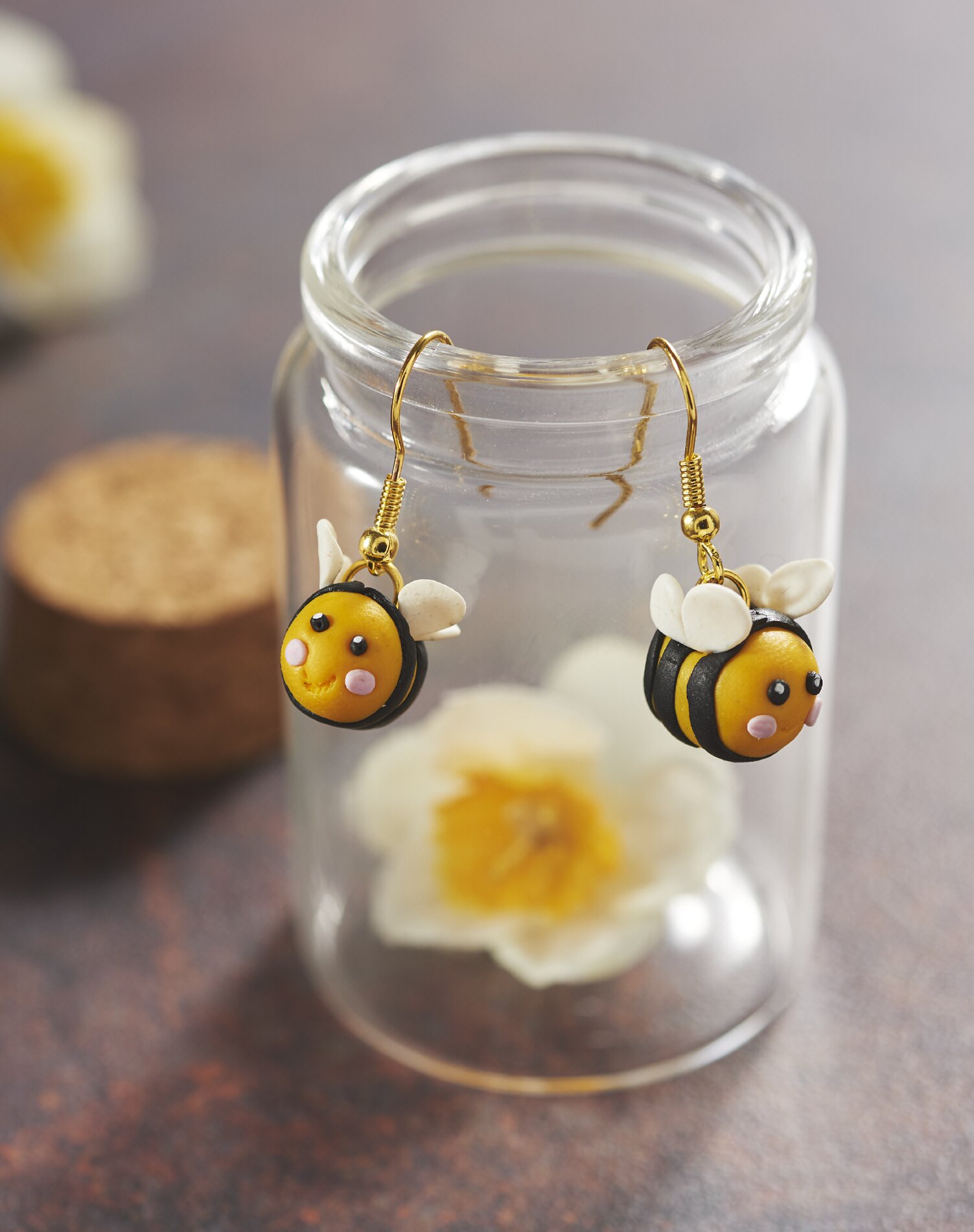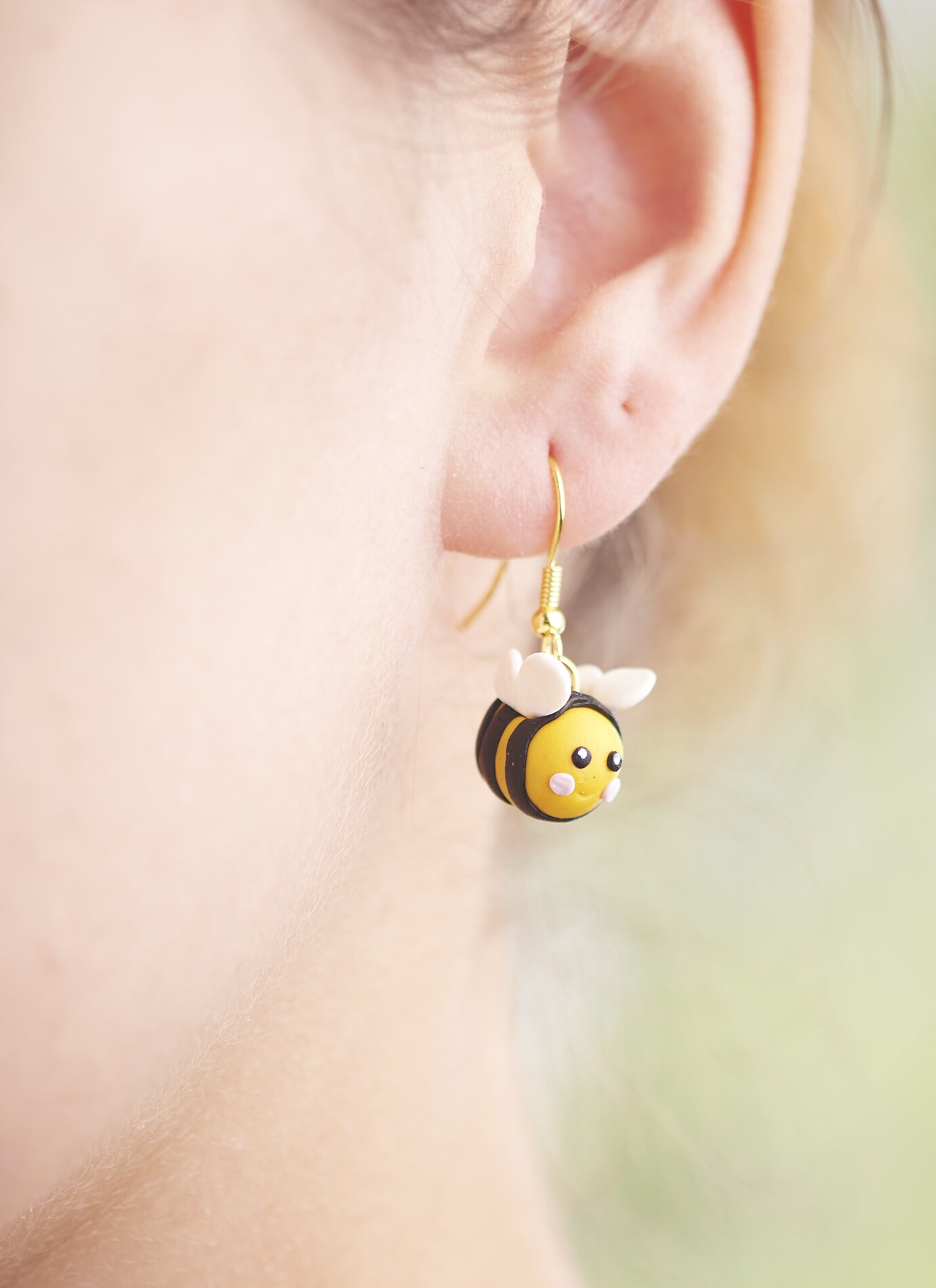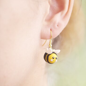 Con un pennarello indelebile bianco, aggiungere punti di luce bianchi agli occhi. Attaccare i ganci per le orecchie ai cerchietti.