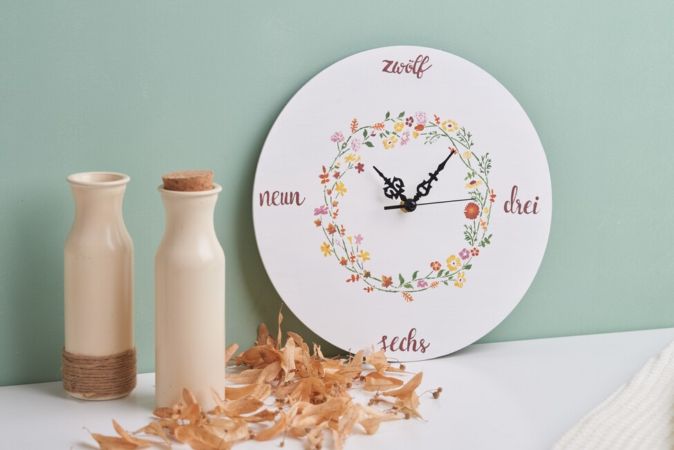 Etichettare l'orologio con i numeri utilizzando un pennarello. Montare l'orologio sulla piastra e applicare le lancette.