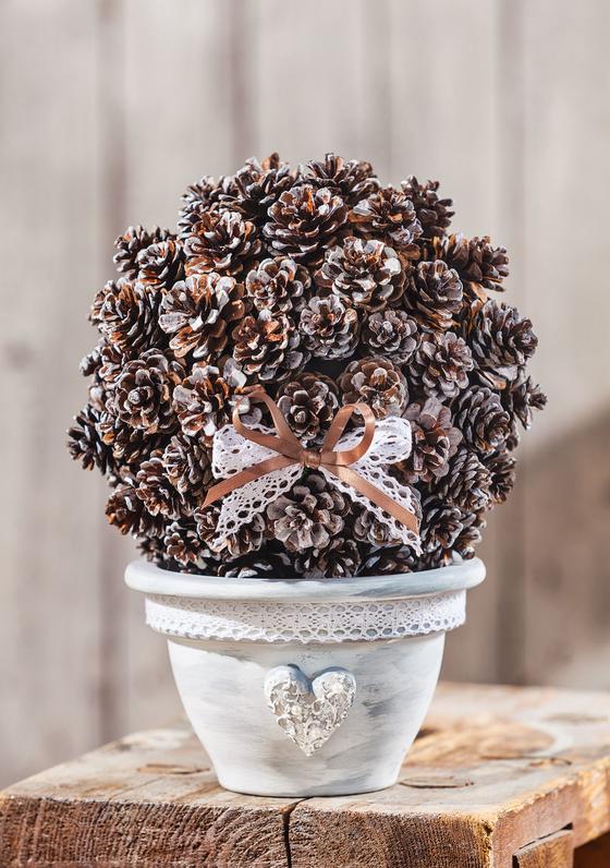 per far sì che il cuore di argilla da modellare si abbini perfettamente al vaso di argilla, viene decorato con una spugna da pittura e una vernice gessosa. Piccole perline incollate danno al cuore un tocco speciale. Il cuore viene posizionato sul vaso di terracotta e incollato.