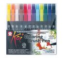La confezione contiene un assortimento finemente coordinato di 12 pennelli colorati Sakura Koi.