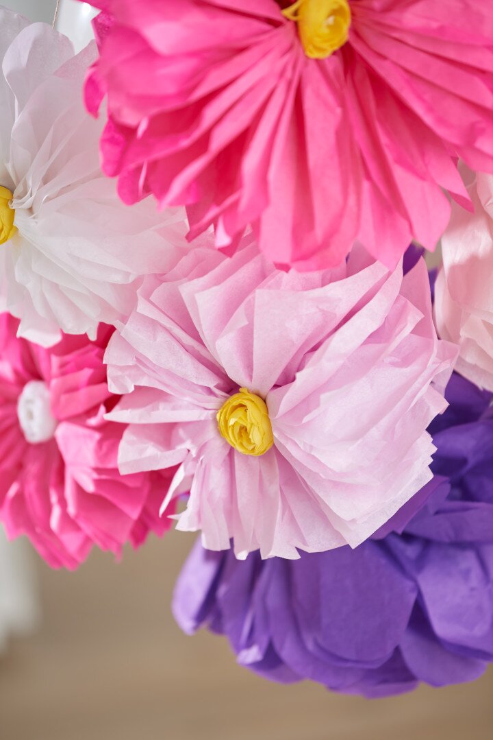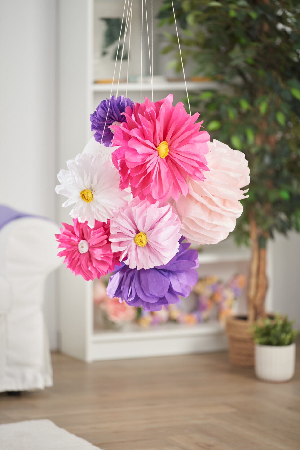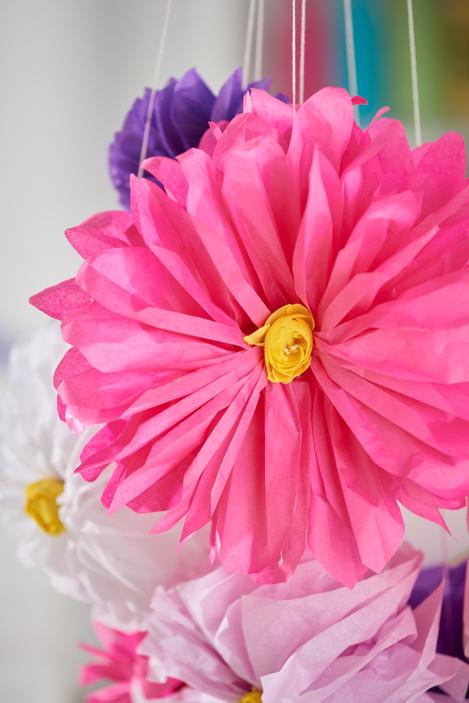 I pompon di carta del nostro esempio di decorazione hanno una dimensione compresa tra 25 e 40 cm circa.