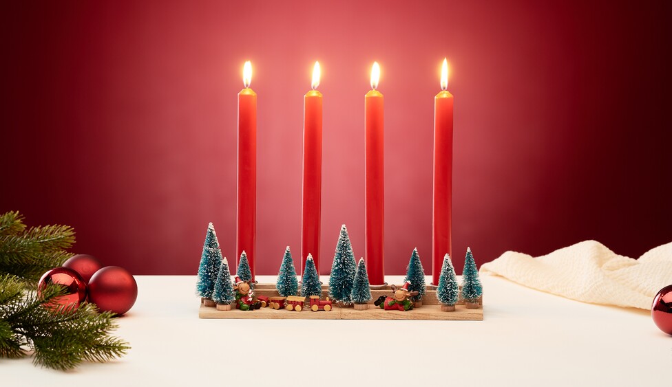 Inserire i dischi di cera adesiva nei portacandele e posizionare le candele a bastoncino all'interno.