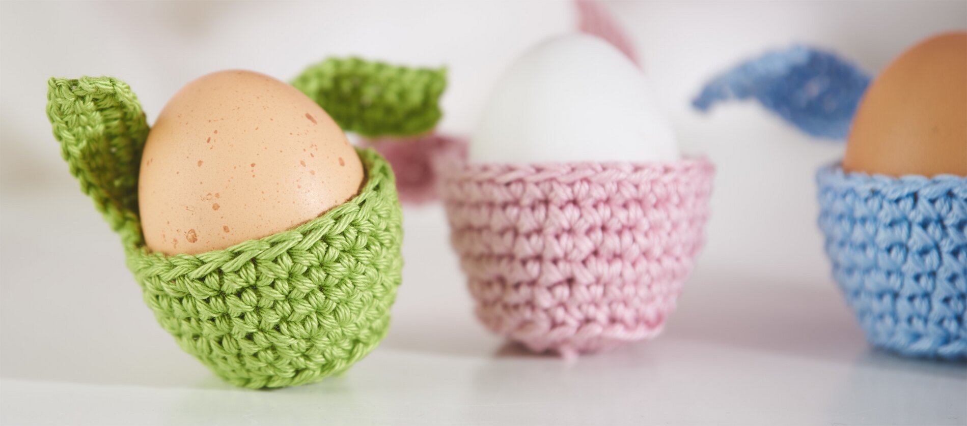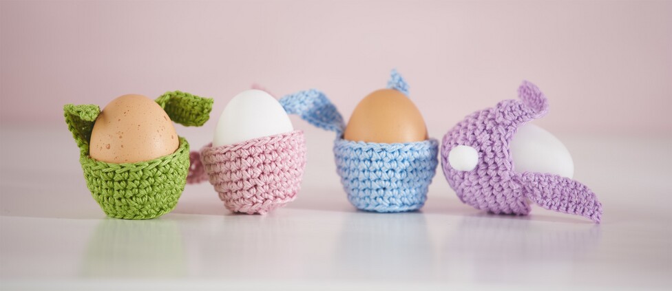 Per questa idea all'uncinetto è necessaria la lana di Catania. Con un solo gomitolo si possono realizzare circa 6 coniglietti utilizzando l'ago 4. Si lavora con due fili contemporaneamente. In questo modo non solo si ottiene un disegno a punto particolarmente bello, solido e spesso, ma le uova sode si manterranno meglio al caldo. Per le orecchie del coniglietto, utilizzare la misura 3 e lavorare con un solo filo.
